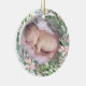 PixDezines Baby's First Christmas photo ornament, featuring Winter Wreath of pine needles, mistletoe, pink poinsettia, and holly berries. Copyright © 2016-2019 PixDezines™. All rights reserved.