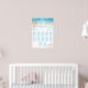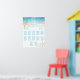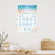 PixDezines seating chart, featuring turquoise blue ocean with white sandy beach, strings of lights and a white chandelier silhouette. We accented with removable mint green and coral orange starfish. PixDezines' designs allow you to edit any elements of the design.