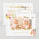 PixDezines watercolor of spring bouquet / flowers, dazzled with "introducing" in faux gold brush script, with a gold heart for a photo for birth announcement postcards, with DIY background colour and fonts.