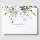 PixDezines elegant monogram guestbook, watercolor flowers and greenery in dusty purple gum Eucalyptus. All elements editable.