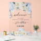 PixDezines monogram greenery wedding welcome sign, featuring an elegant Alabaster Roses, ice blue hydrangeas and dusty blue foliage. This welcome sign is suitable for any event. Our dynamic design allows you to add and edit all elements. Copyright © 2020-2024 PixDezines™. All rights reserved.