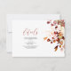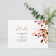 PixDezines elegant rustic fall Eucalyptus bouquets details card for any event. Featuring deep red watercolor roses and blush pink modern calligraphy script.