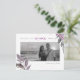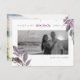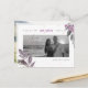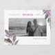 PixDezines dusty purple fall foliage and elegant calligraphy script font in faux rose gold foil with DIY engagement photos for save our date postcards, accented with ink splatters in faux gold.