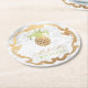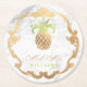 PixDezines Faux Gold Pineapples+White Marble Round Paper Coaster
