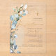 PixDezines First Holy Communion invitation, featuring watercolor lush greenery in dusty blue gum Eucalyptus and blue foliage, a faux gold cross, gold dust and frame accented with luxury calligraphy script. All elements editable and removable.