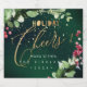 PixDezines an elegant modern calligraphy in faux gold Holiday Cheers, iridescent emerald green label and winter sprigs of pine needles, holly berries and mistletoe.