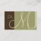 PixDezines monogram en retro in chocolate brown and sage green business cards. Or just as a profile card in your wallet to introduce yourself in style. Have fun playing with the fonts and background colours.