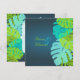 PixDezines Monstera, tropical foliage, in shades of aqua blue and lime green with customisable teal background, etc. Perfect card for any occasion : birthday, anniversary family reunion or for a destination wedding or just a family luau.