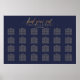 PixDezines Modern Calligraphy Font in faux gold and DIY background, navy blue, Seating Chart. DIY fonts+background color. 24 Tables Chart.
