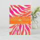 PixDezines hot pink and mandarin orange zebra print Bat Mitzvah invitations.