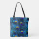 PixDezines PSYCHEDELIC BLUE PEACOCK FEATHER Tote Bag