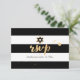 PixDezines rsvp black and white white stripes, black star of david bar mitzvah.. one of our classic collections with DIY background colour, as well as the fonts and its colours. Please send us an email for your hebrew name. Easy to customise, simply click "customise it" button to edit your text. All image files are adjustable.
