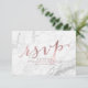 PixDezines rsvp dazzled in faux rose gold brushed script and white marble slab background. Perfect for a winter soiree.