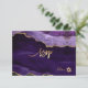 PixDezines Mitzvah RSVP, featuring modern art watercolor Agate in purple and black with faux gold veins. Accented with gold Star of David.