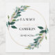 PixDezines watercolor rustic greenery Eucalyptus Sprigs accented with faux gold chic calligraphy script, wedding favour stickers.