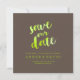PixDezines stylish brush script save the date in lime / neon green (faux foil) with DIY winter grey background colour. PixDezines dynamic designs allow you to edit any element on this invitation template. Copyright © 2016 PixDezines.com™ and PixDezines™ on zazzle.com. All rights reserved.