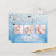 PixDezines "A Star is Born" birth announcement, featuring dazzled faux metallic stars, real snow bokeh background in magnum grey and modern calligraphy script, with a heart for photos birth announcement postcards, with DIY background colour and fonts.