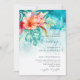 PixDezines tropical paradise wedding, watercolor aqua blue waves crashing on the shoreline, accented with tropical floral and foliage. Key colours are vibrant aqua monstera and coral orange hibiscus, peach anthuriums for any tropical event. We sprinkled with faux gold dust. This tropical paradise all in one invite is perfect for a luau wedding. PixDezines' dynamic design allows you to edit background colour, fonts and fonts' colours, as well as copy and paste or remove any element... . Easy to customise. Add your own unique style to our template.