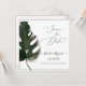 PixDezines Variegated Monstera Leaves Dark Forest Green and beautiful shade of grey, forest green and ivory. Greenery Save the Date with modern calligraphy script.
