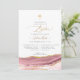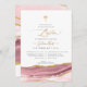 PixDezines Baptism invitation, featuring watercolor agate in blush pink, dusty pink rose, dusty mauve and faux gold veins, a cross accented with luxury calligraphy script. All elements editable and removable.
