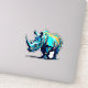 Instantly upgrade the look of your personal gear with this fantastic, high-quality die-cut vinyl sticker. Showcasing a brilliant 8-bit pixel art illustration of a wild rhinoceros, this decal is a massive throwback to the classic era of arcade and console gaming. The vibrant combination of bright cyan and bold orange colors ensures that this little geometric beast will stand out spectacularly wherever you decide to place it.
