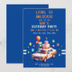 Pixel Blue & Orange Car Gaming Birthday Invitation