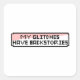 This pixel-perfect wall art features the witty phrase **“My glitches have backstories” ** rendered in classic chat box style—ideal for retro gamers, nostalgic nerds, and digital storytellers alike.