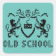 Design depicting a heraldic coat of arms by pixel art. The shield is supported by rampant lions. There are also the words: Old School. A sticker for nerds and geeks