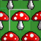 A pixel art fly agaric mushroom. The red spotted mushroom is on a green background. The background colour can be changed.