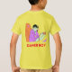 The t-shirt feels and looks great quality, a good thick cotton. It will be a little big for my son, but that means he will be able to wear it and not out grow it too soon. The print was as described on the order when personalised. True size, shape and colour T-shirt- thanks.