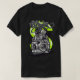 This T-shirt design features a pixelated grayscale illustration of a soldier crouching in front of a neon green and gray abstract background. The soldier, wearing a helmet and body armor, holds a weapon while neon green swirls and geometric shapes create a dynamic and intense scene. The centered composition highlights action and intensity, with detailed textures enhancing the graphic quality. Perfect for video game fans, military enthusiasts, or anyone looking for bold, action-packed pixel art apparel.
