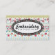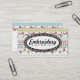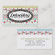 Pixel art, cross stitch or embroidered flowers in pink, mint, and green business card or 'handmade with love' gift tags for embroidery or stitching crafts. Roses and other florals with geometric border designs and pretty daisy text frame on the front.