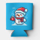 Pixelated Snowman with Coffee - Winter Holiday Art Can Cooler