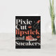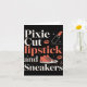 Pixie cut lipstick and sneakers short hair style card