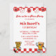Immerse yourself in the world of 1st birthday themes with our delightful pizza party invitations! 🎉🍕 Slice Slice Baby, it's time to celebrate with Italian flair! Whether you opt for a print invite or Digital Invitation, our designs are sure to enchant. Featuring a charming bicolor red and white chequerboard pattern, adorned with adorable kawaii dancing slices of pepperoni pizza, complete with eyes and legs with flowers. At the heart of the invitation, bold red text invites your guests: "Join us for a pizza party." It's the perfect invitation to set the tone for a memorable celebration! 🎂💌
