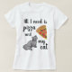 A t-shirt featuring the 2 best things in life, pizza and cats with the words All I need is Pizza and My Cat. Great as a gift for a person who loves pizza and cats.