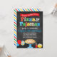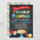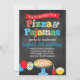 Our original, best-selling, Pizza & Pyjamas Chalkboard style birthday party invitation is the perfect invite for any pizza and pajama theme party. Our design features a chalkboard background, a mix of fun pattern letters such as polka dots, stripes and chevron, a pizza on a stand, party drink, and bowl of popcorn.