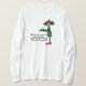 I love this shirt. I had written to the artist asking her if this picture was available on a shirt, and she wrote me back telling me where I could find the shirt. These shirts can be custom made to have a different saying. I loved this saying and went with it. The artist wrote me back later to tell me that she had seen my order go through. How's that for service? Pretty special. It's just as displayed. Perfect!