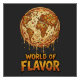 Cartoon Earth as a giant dripping pizza, with distressed text: “World of Flavor.”