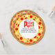 Personalise kids birthday pizza party invitation with your celebration event information. Juicy vector made pizza with crunchy crust, cheese, salami, champignon mushrooms, olives and a sprinkle of oregano.