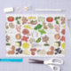 Design features an original marker illustration of delicious pizza toppings, including mushrooms, sausage, peppers, onions, tomatoes, cheese, anchovies, pepperoni, spinach, bacon, capers, garlic, basil, and many more. Ideal for a pizza lover or a make your own pizza party!