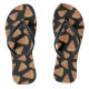 A cute pair of flip flops featuring an adorable pepperoni pizza pattern on a black background! Perfect for a pizza lover.