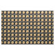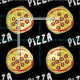 This fabric features a pattern of pepperoni pizzas against a black background.