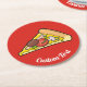 Pizza slice cartoon illustration. Custom background colour. Custom text.