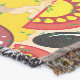 A quality printed throw has its advantages. This is a much finer weave throw than its loopier cousins, and though lighter, it is worth the investment for custom room accessorizing. The back is much prettier than the typical brown, and the fringe on the long sides very vivid, the selvage nicely done. Before photographing, I washed the throw in cold water, delicate, with a thicker woven throw the same size. On tumble dry low, this throw was dry in half the time as the other. This is a very practical quality if you use throws for furniture covers or to wrap up in frequently. The sleekness of the fabric makes it a great layer for accenting or protecting without the feeling of sitting on too much stuff. Perfect for napping or when you feel a light chill coming on. The color printing is beautiful and on this fabric, matched the design and color of my Photoshop image. This is an advantage for blending room fabrics and colors. The fringe on the short sides prints the colors from the design image and therefore varies from the side fringe. I streaked a white fractal line through the plaid pattern to give the illusion of weaving. This printed as crisp as an illusory thread, and put some white in the short side fringe, showing another advantage of print vs loomed- for artistic purposes, line lines, detail, and color integrity can be planned and preserved. My loomed throws have color limitations and more of a needlepoint texture. Print throws reproduce an exact image. The throw felt a little stiff straight out of the package, but this went away in the first delicate wash. Of course I searched the wash water for ink or bleeding and there was none.