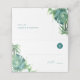 This tropical destination wedding Place Card with meal choice features a boarder of watercolor palm leaves and greenery. Space is provided for guest name, table number and meal choice initial: (v) vegan, (b) beef, (c) chicken (gf) gluten free. Cards reverse to reveal matching bride and groom's names and wedding date. The inside features a complimentary emerald green colour. A charming and botanical theme for Jamaican, Florida Keys and Filipiniana weddings. To see matching wedding table decor visit www.zazzle.com/dotellabelle