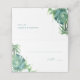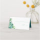This tropical destination wedding Place Card or Escort Card features a boarder of watercolor palm leaves and greenery. Space is provided for guest name and table number. Cards reverse to reveal matching bride and groom's names and wedding date. The inside features a complimentary emerald green colour. A charming and botanical theme for Jamaican, Florida Keys and Filipiniana weddings. To see matching wedding table decor visit www.zazzle.com/dotellabelle