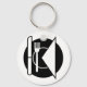 This design is a place setting. The place setting is at a table and is black and white. This place setting design looks great on this Keychain