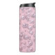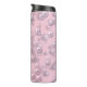 Placers of white-pink pearls on pink velvet thermal tumbler