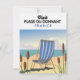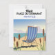 Plage du Donnant France beautiful vintage style deck chair on a beach seaside travel poster.